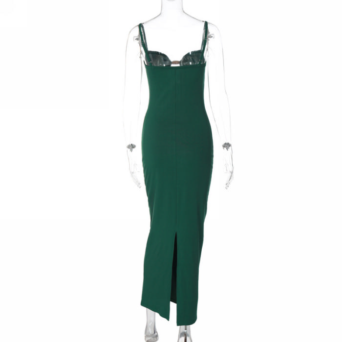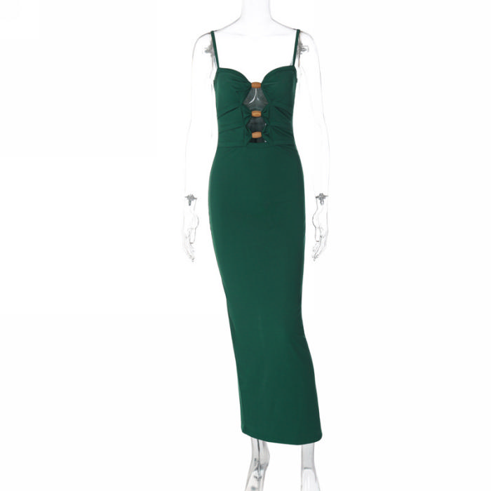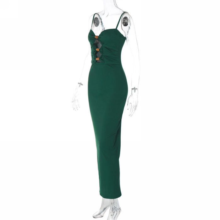 (Real Image)2023 Styles Women Sexy&Fashion Spring&Summer TikTok&Instagram Styles Green Cut Out Strap Maxi DressSKU: #CF38211-1