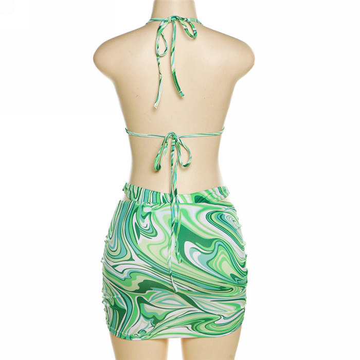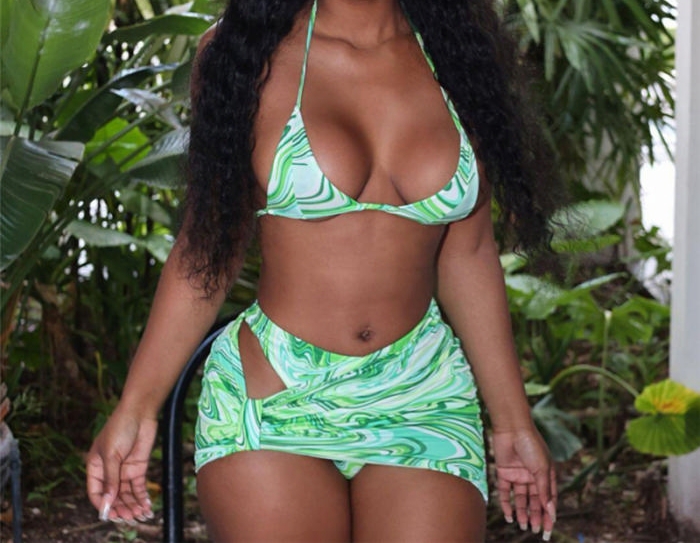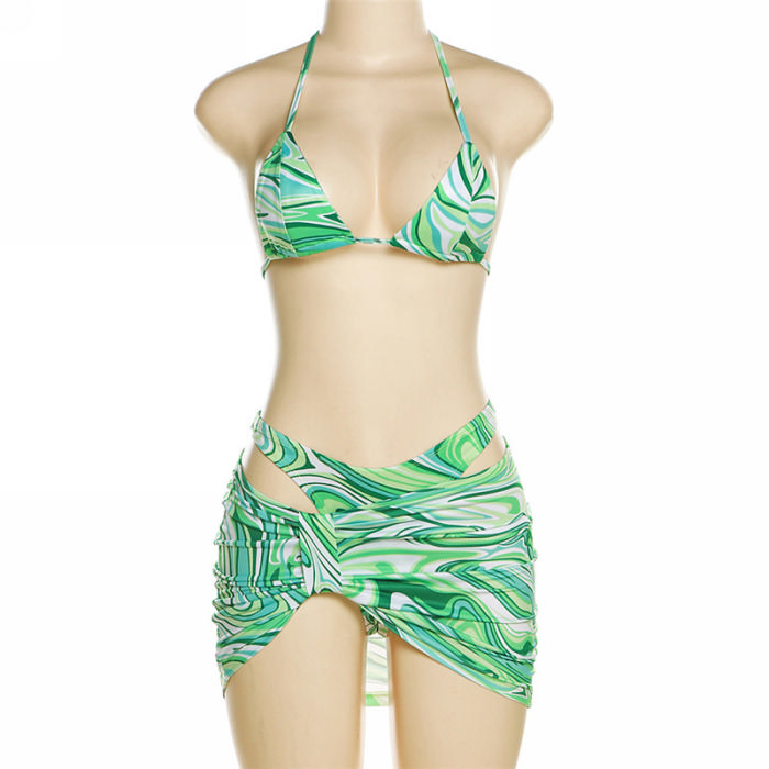 (Real Image)2023 Styles Women Sexy&Fashion Spring&Summer TikTok&Instagram Styles Green Print 3 Piece SwimsuitsSKU: #CF77312-1