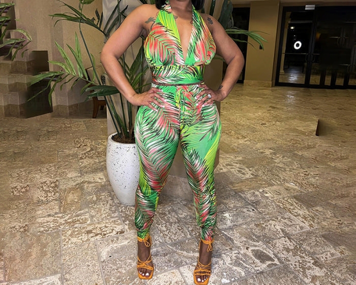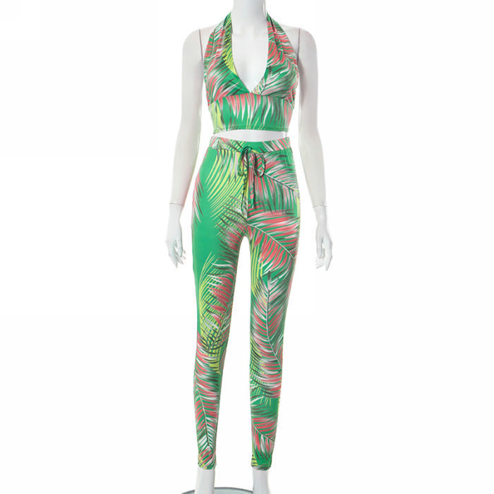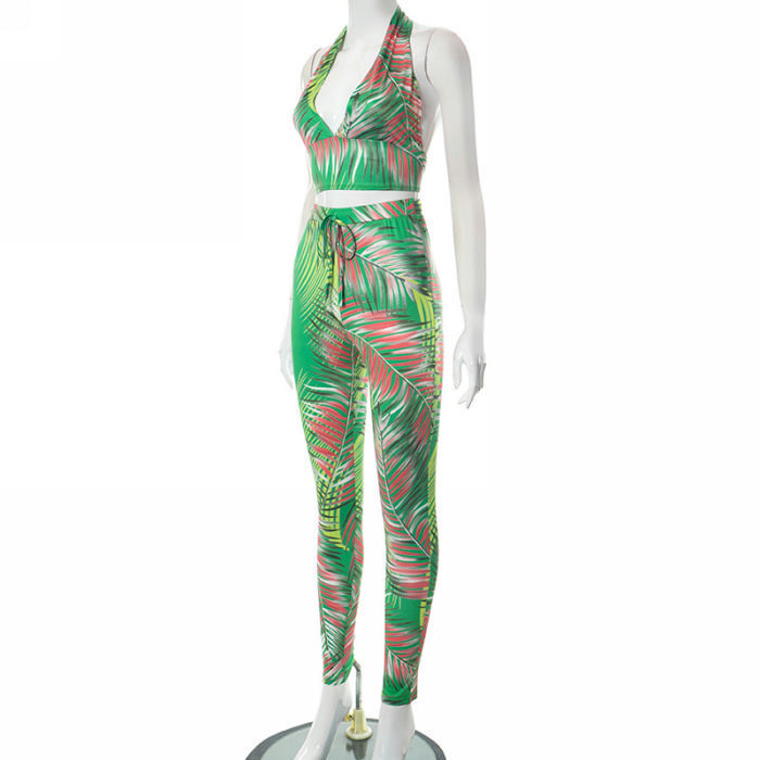 (Real Image)2023 Styles Women Sexy&Fashion Spring&Summer TikTok&Instagram Styles Green Print Two Piece SuitSKU: #CF80146-1