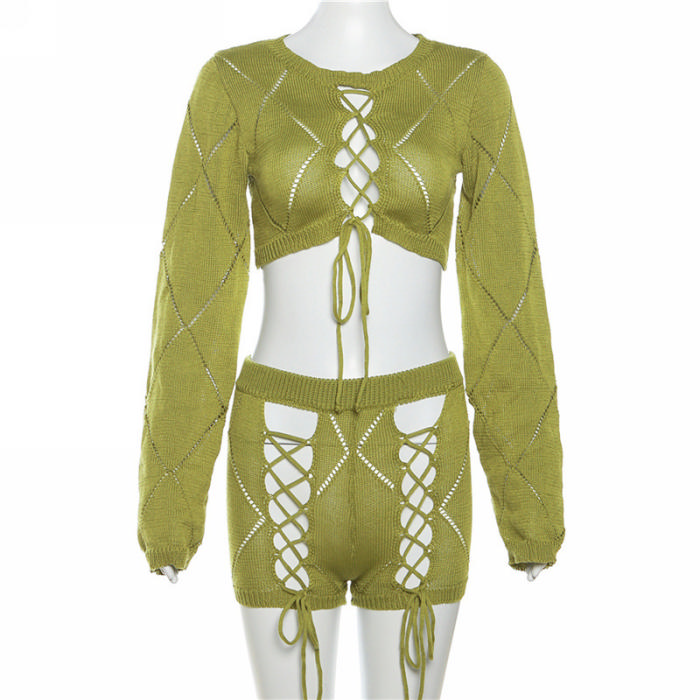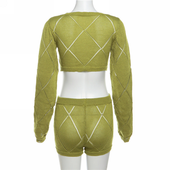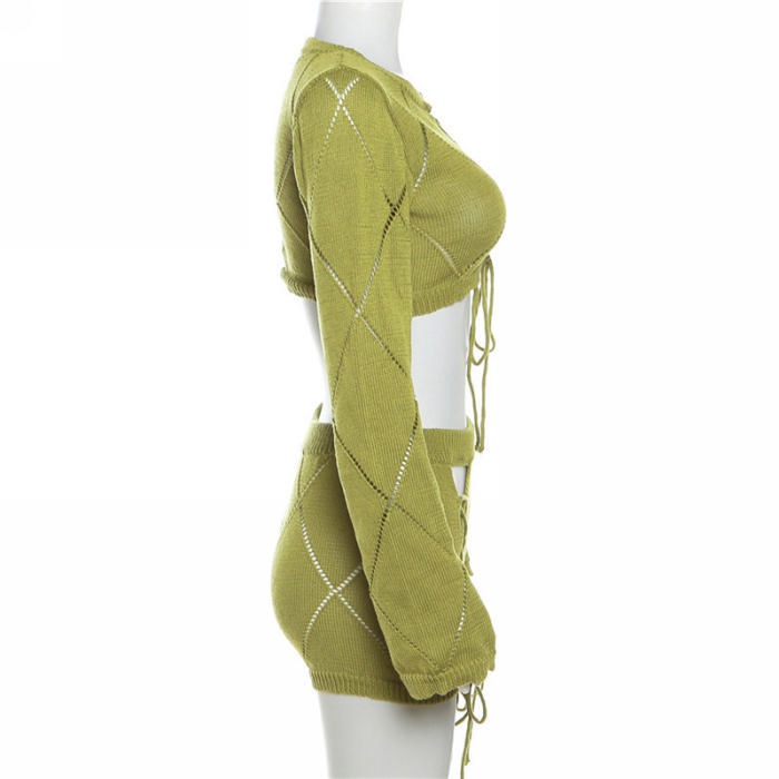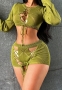 (Real Image)2023 Styles Women Sexy&Fashion Spring&Summer TikTok&Instagram Styles Green Sweater Short Two Piece SuitSKU: #CF83167-1