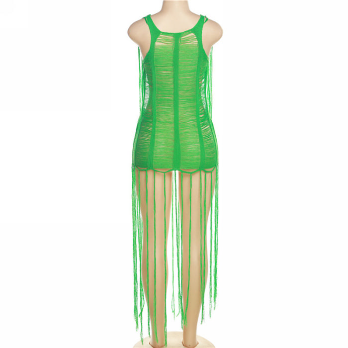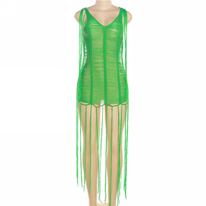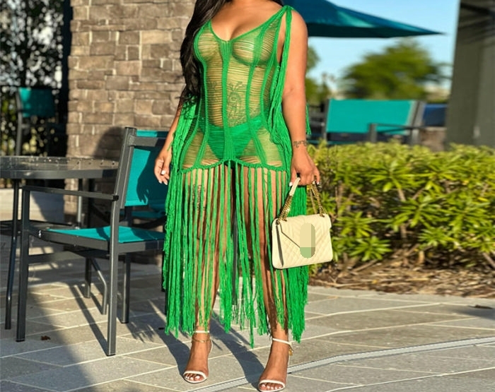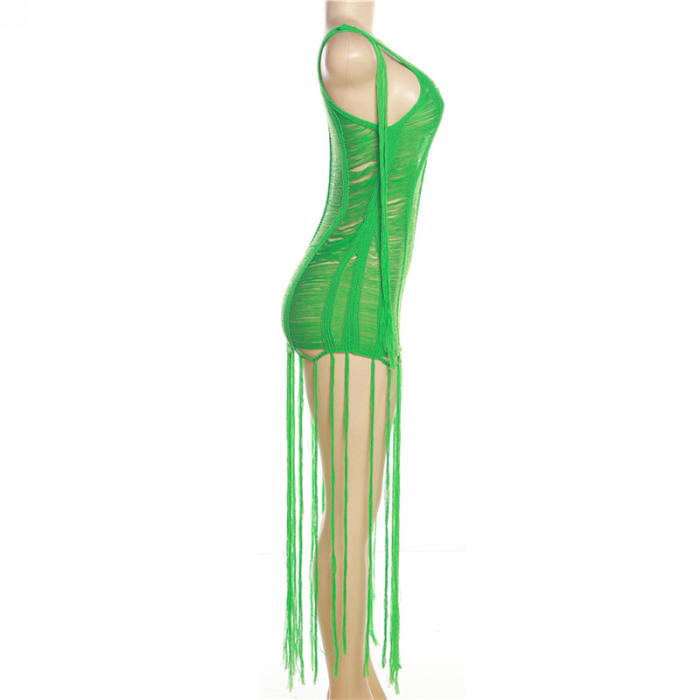 (Real Image)2023 Styles Women Sexy&Fashion Spring&Summer TikTok&Instagram Styles Green Tassel Mini DressSKU: #CF77255-1