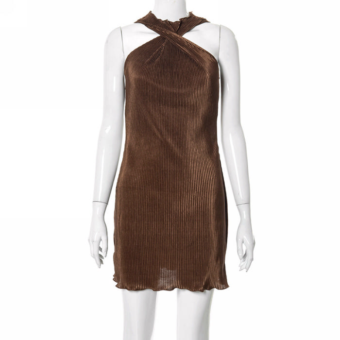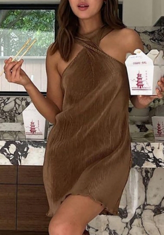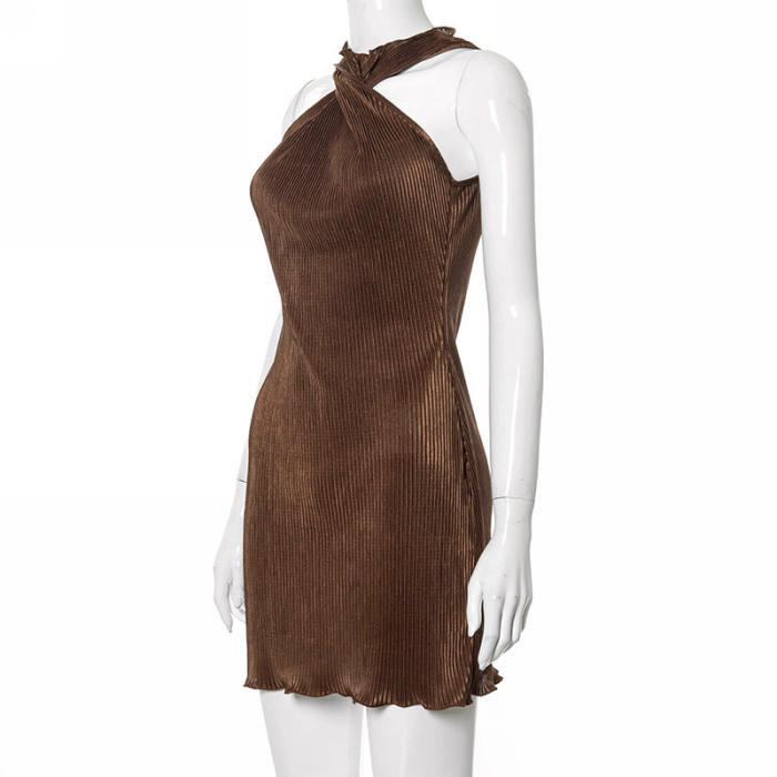 (Real Image)2023 Styles Women Sexy&Fashion Spring&Summer TikTok&Instagram Styles Halter Brown Club DressSKU: #OEM5857-1
