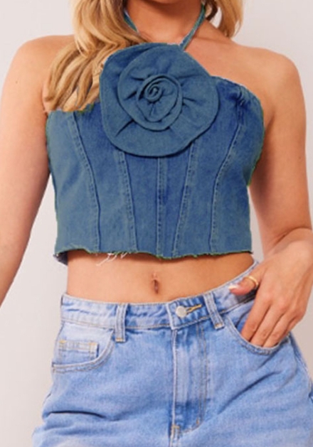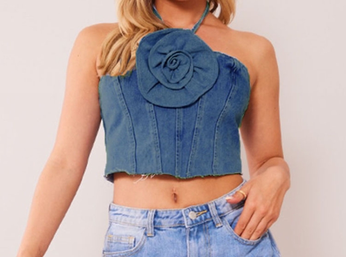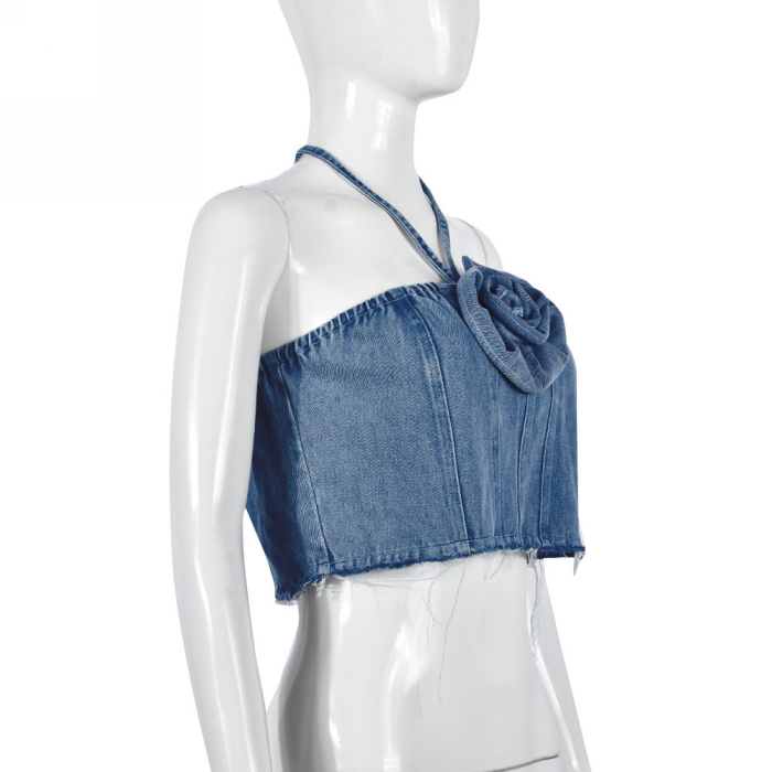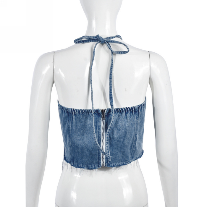 (Real Image)2023 Styles Women Sexy&Fashion Spring&Summer TikTok&Instagram Styles Halter Jeans TopsSKU: #CF59688-1
