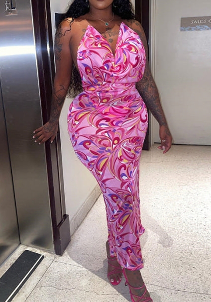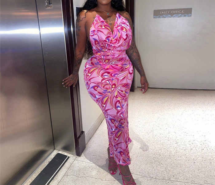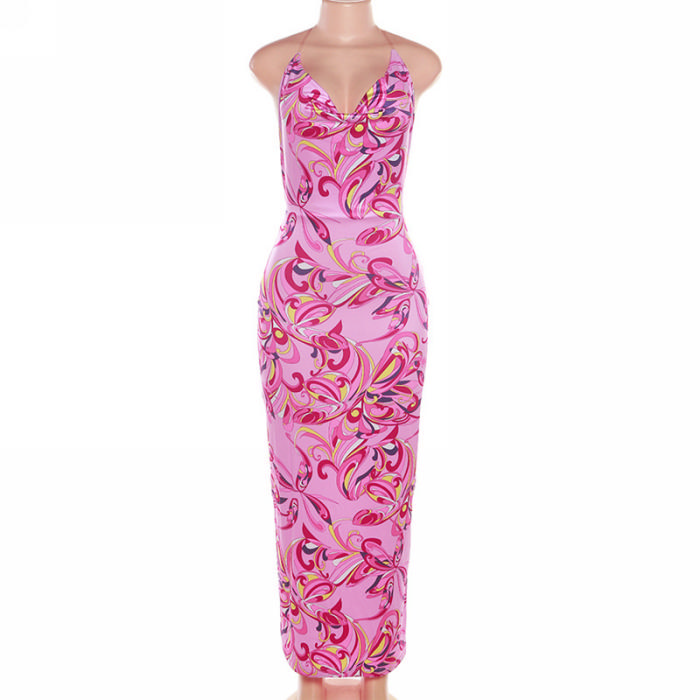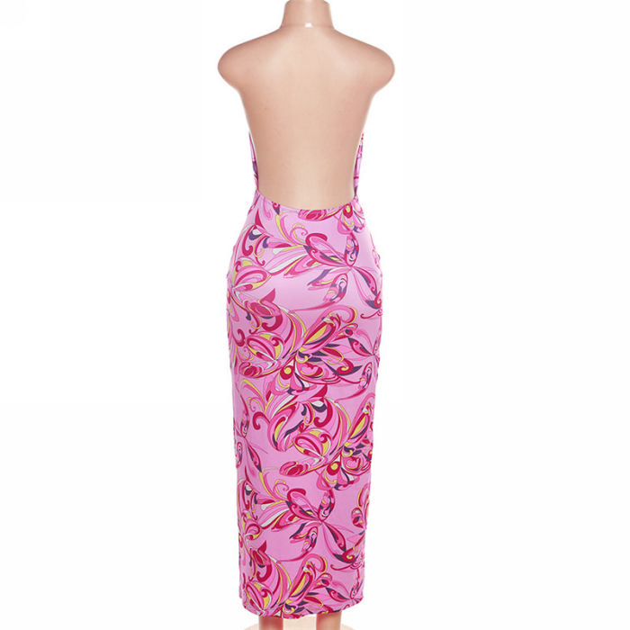 (Real Image)2023 Styles Women Sexy&Fashion Spring&Summer TikTok&Instagram Styles Halter Print Maxi DressSKU: #CF83086-1