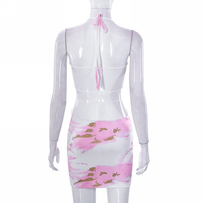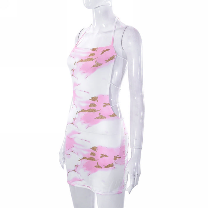 (Real Image)2023 Styles Women Sexy&Fashion Spring&Summer TikTok&Instagram Styles Halter Print Mini DressSKU: #CF80075-1