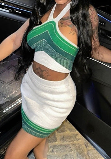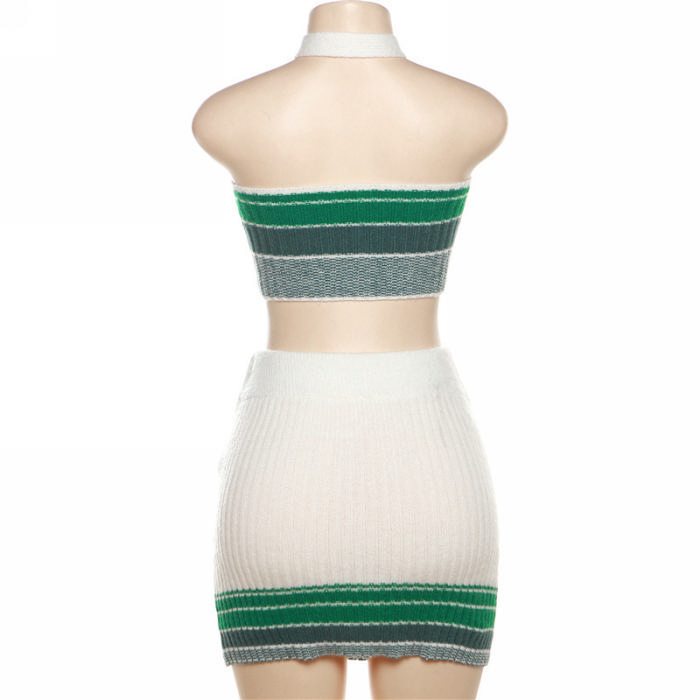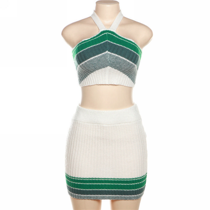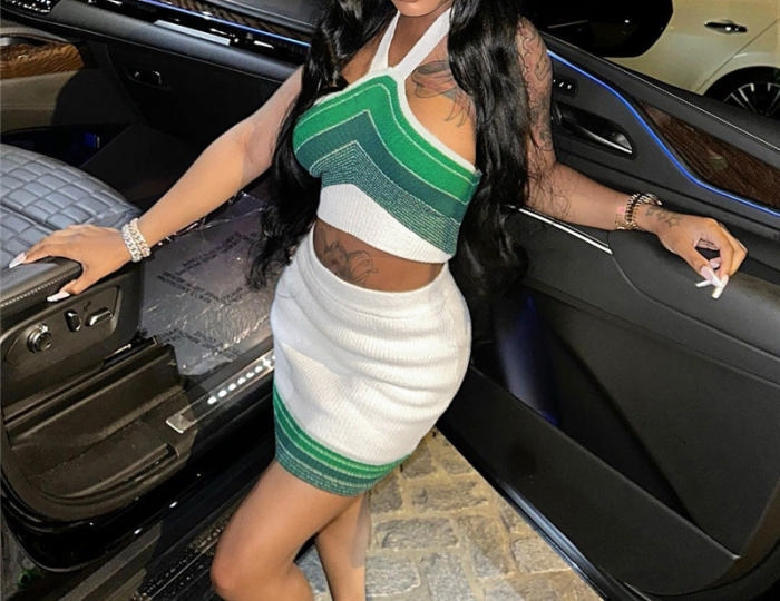 (Real Image)2023 Styles Women Sexy&Fashion Spring&Summer TikTok&Instagram Styles Halter Sweater Two Piece DressSKU: #CF77442-1