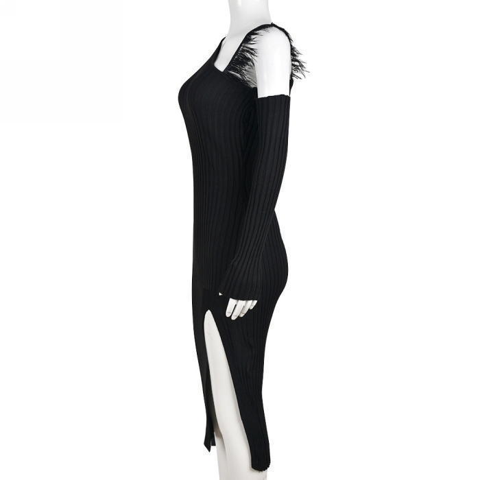 (Real Image)2023 Styles Women Sexy&Fashion Spring&Summer TikTok&Instagram Styles High Split Long Sleeve Midi DressSKU: #CF59530-1