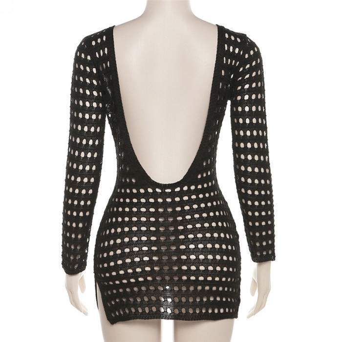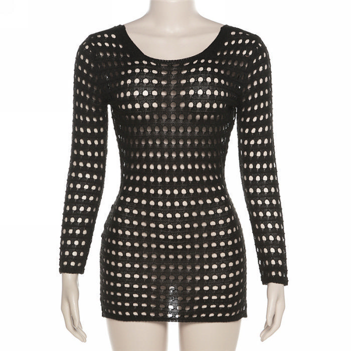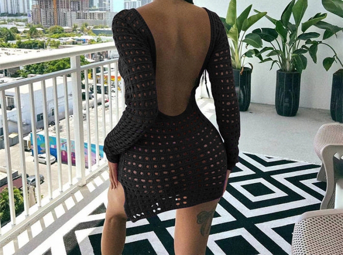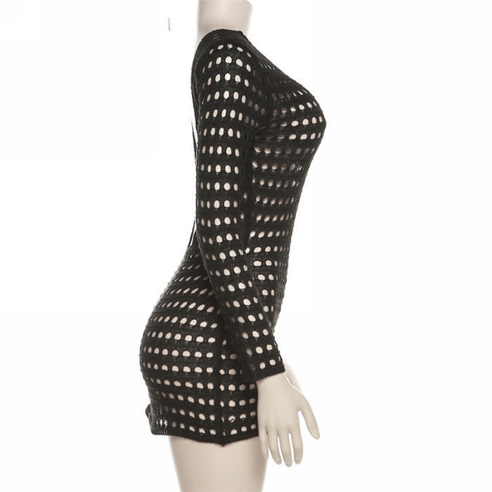 (Real Image)2023 Styles Women Sexy&Fashion Spring&Summer TikTok&Instagram Styles Hollow Long Sleeve Mini DressSKU: #CF77279-1