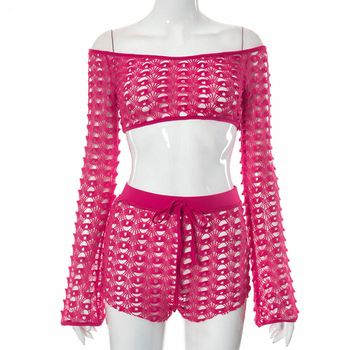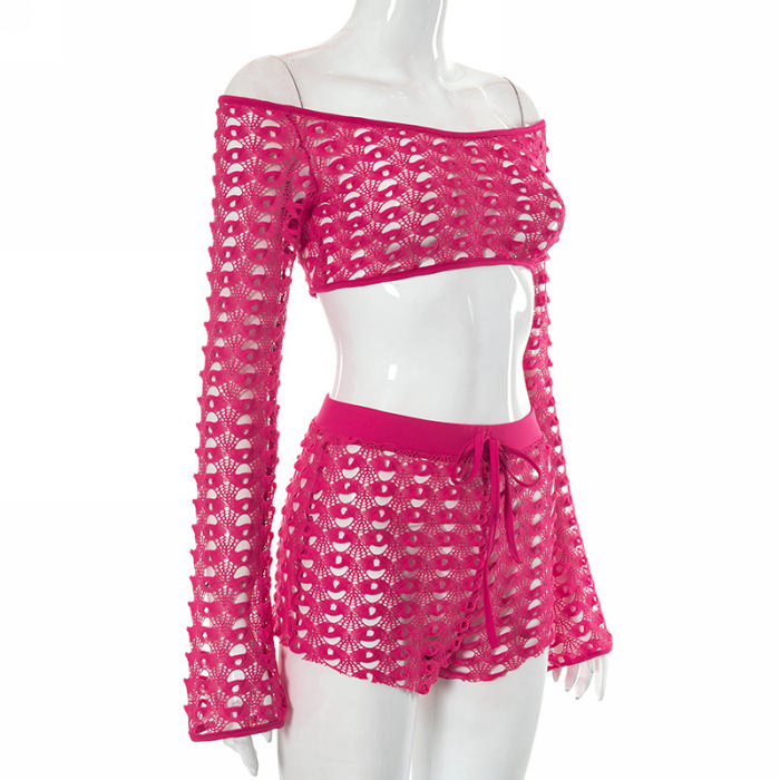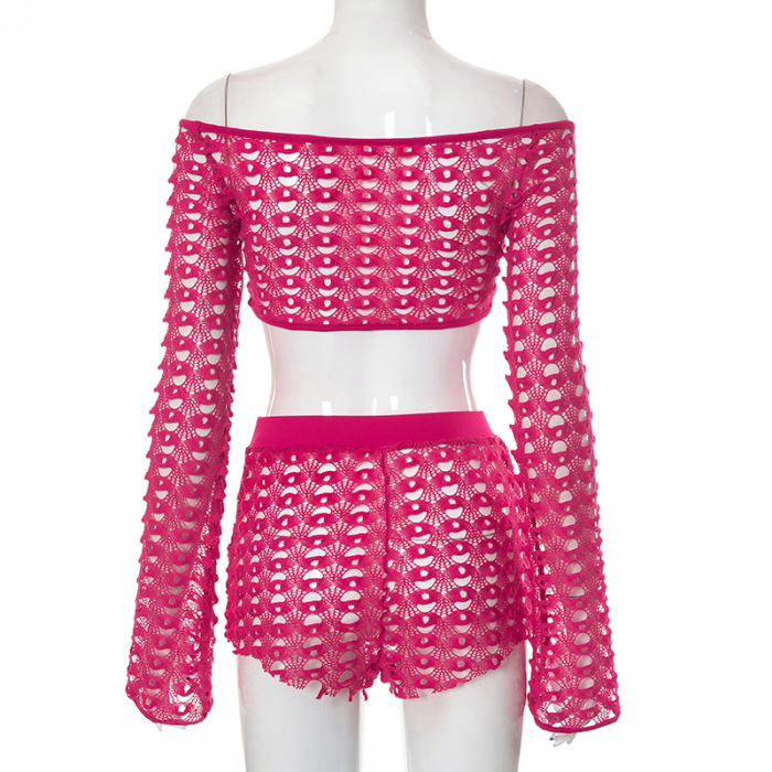 (Real Image)2023 Styles Women Sexy&Fashion Spring&Summer TikTok&Instagram Styles Hollow Off Shoulder Short Two Piece SuitSKU: #CF47666-1
