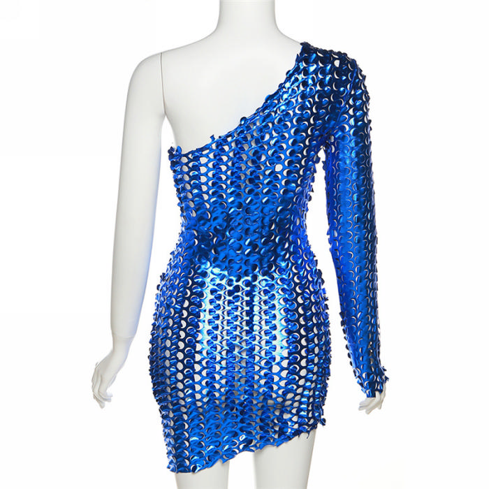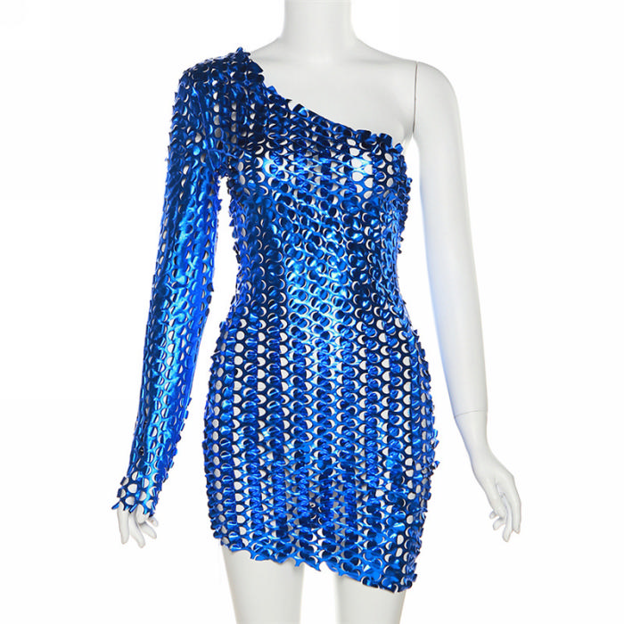 (Real Image)2023 Styles Women Sexy&Fashion Spring&Summer TikTok&Instagram Styles Hollow Single Shoulder Club DressSKU: #CF83009-1