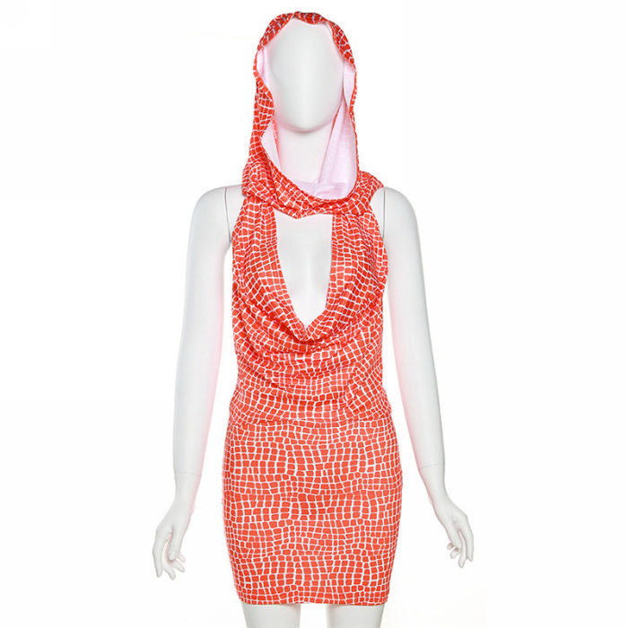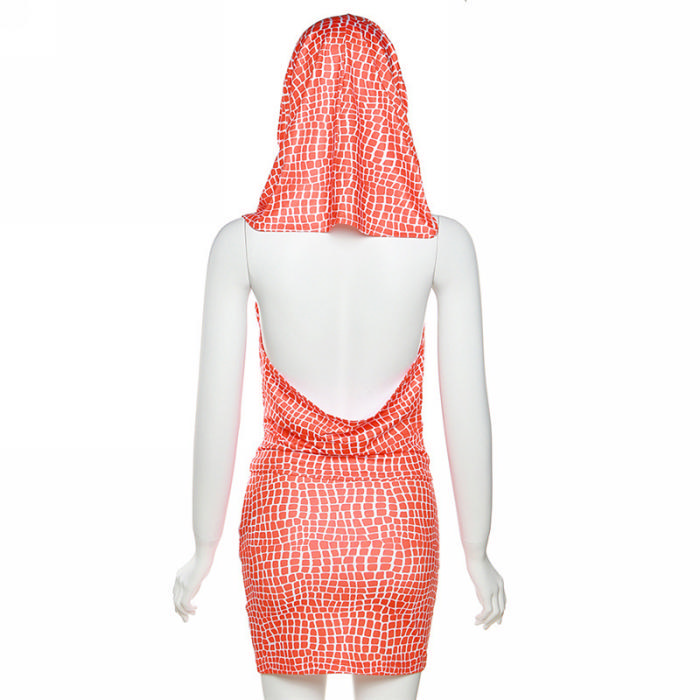 (Real Image)2023 Styles Women Sexy&Fashion Spring&Summer TikTok&Instagram Styles Hoodie Orange Backless Two Piece DressSKU: #CF83068-1