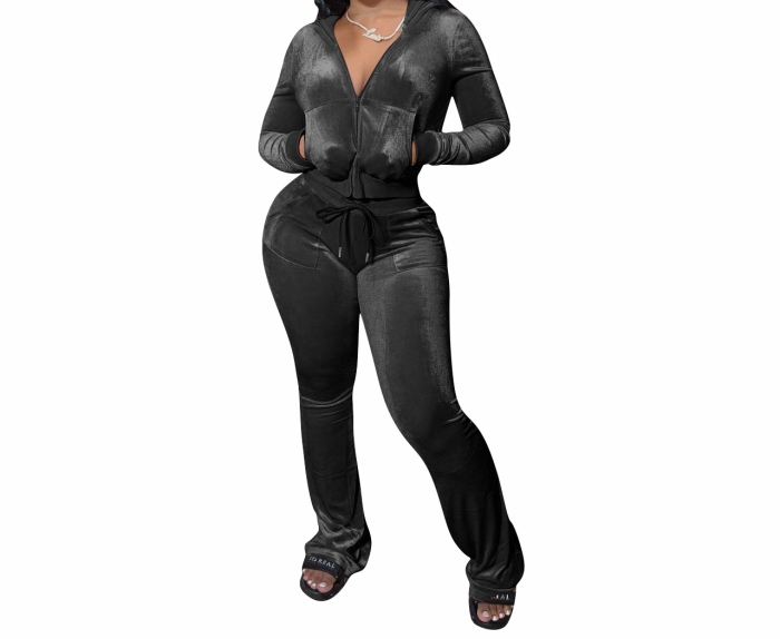 (Real Image)2023 Styles Women Sexy&Fashion Spring&Summer TikTok&Instagram Styles Hoodie Velvet Two Piece SuitSKU: #OU283-7