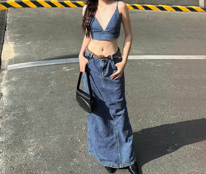(Real Image)2023 Styles Women Sexy&Fashion Spring&Summer TikTok&Instagram Styles Jeans Maxi DressSKU: #CF88079-1