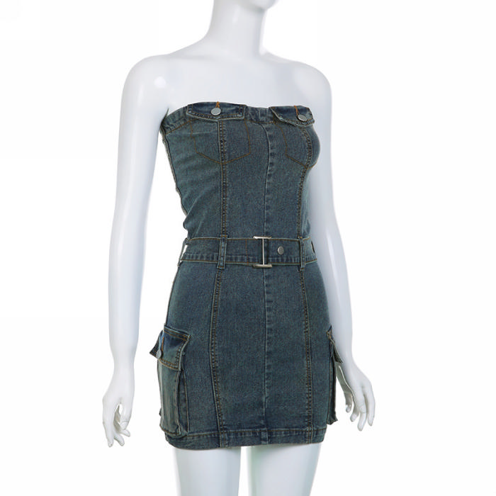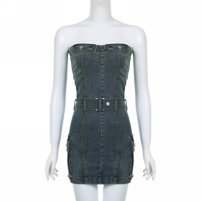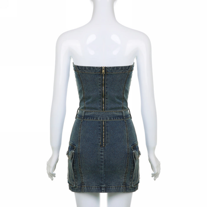 (Real Image)2023 Styles Women Sexy&Fashion Spring&Summer TikTok&Instagram Styles Jeans Tube Club DressSKU: #CF86026-1