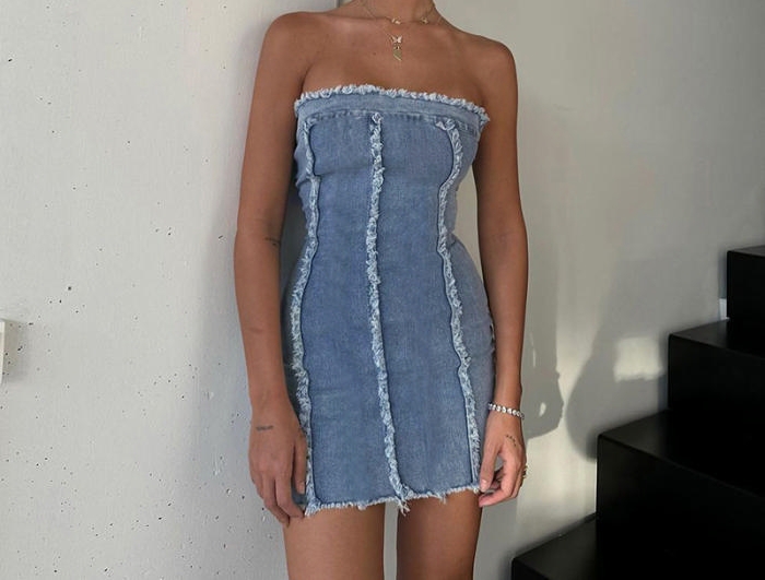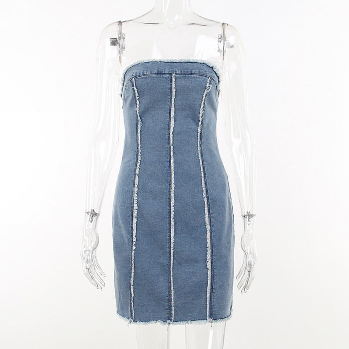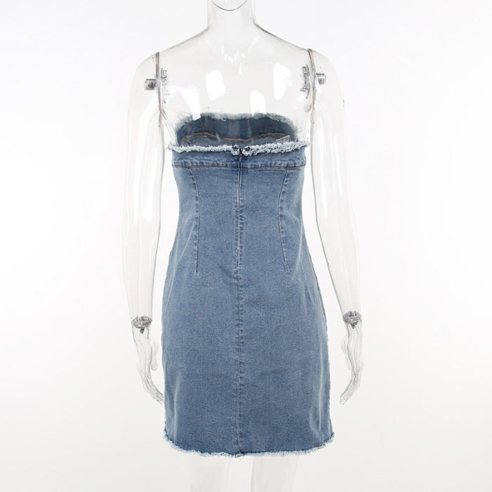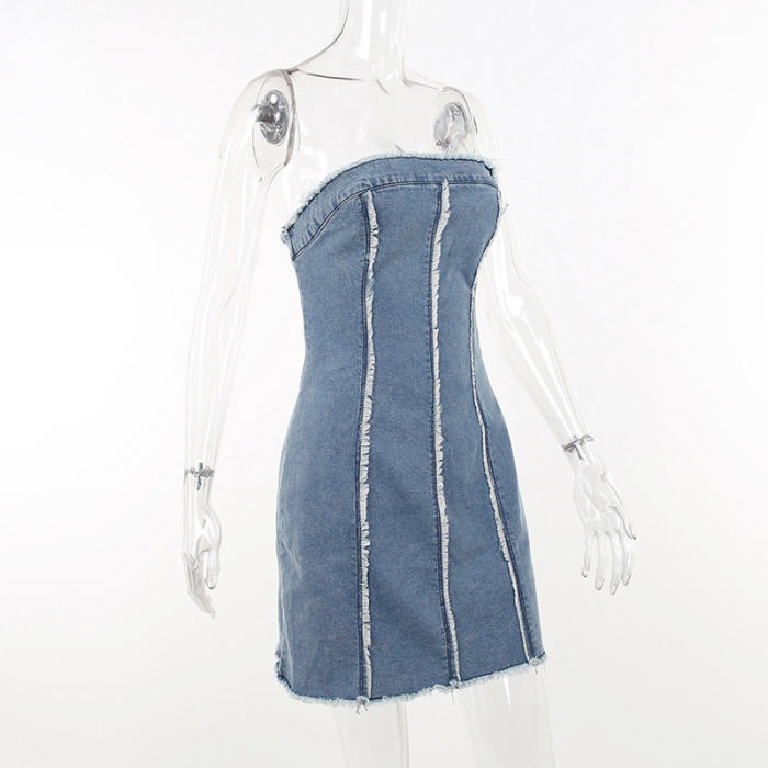 (Real Image)2023 Styles Women Sexy&Fashion Spring&Summer TikTok&Instagram Styles Jeans Tube Mini DressSKU: #XF92809-1