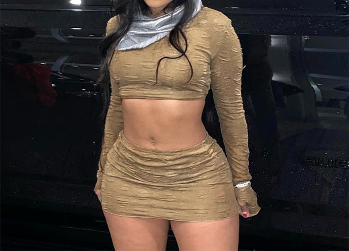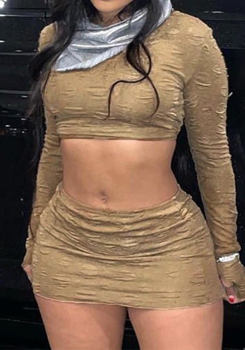 (Real Image)2023 Styles Women Sexy&Fashion Spring&Summer TikTok&Instagram Styles Khaki Long Sleeve Two Piece DressSKU: #CF47687-1