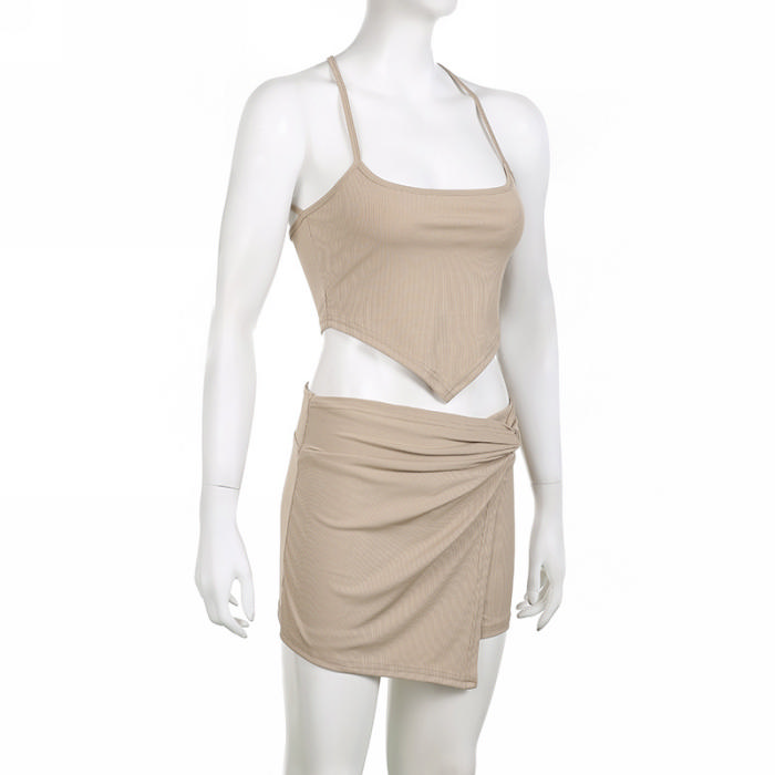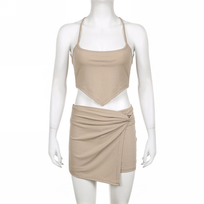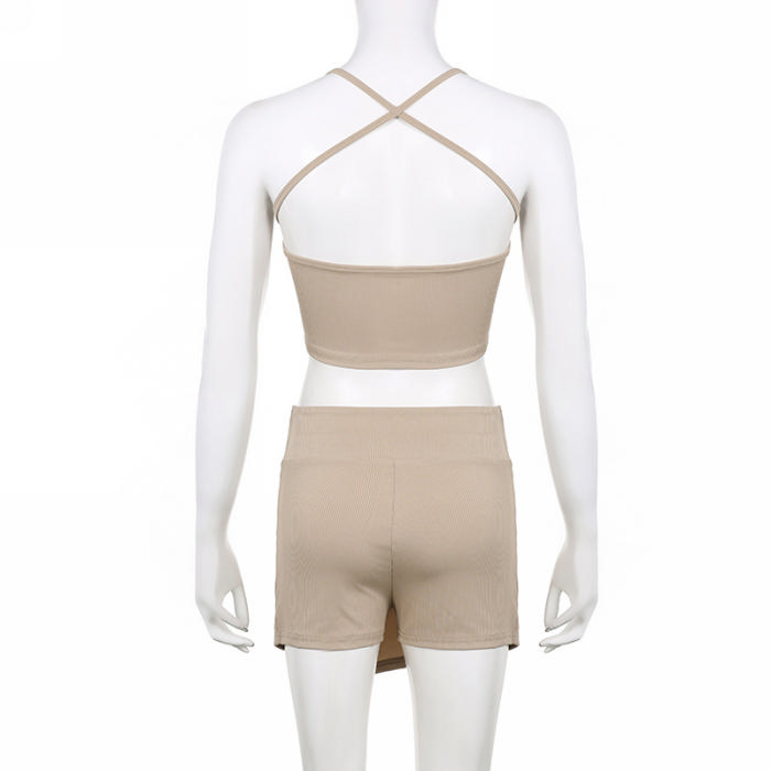 (Real Image)2023 Styles Women Sexy&Fashion Spring&Summer TikTok&Instagram Styles Khaki Short Two Piece SuitSKU: #CF86021-1