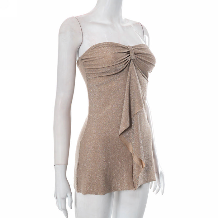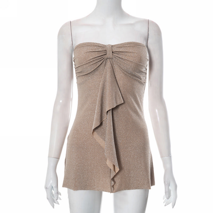 (Real Image)2023 Styles Women Sexy&Fashion Spring&Summer TikTok&Instagram Styles Khaki Tube TopsSKU: #CF76070-1