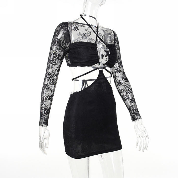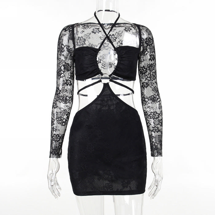 (Real Image)2023 Styles Women Sexy&Fashion Spring&Summer TikTok&Instagram Styles Lace Long Sleeve Club DressSKU: #XF92787-1