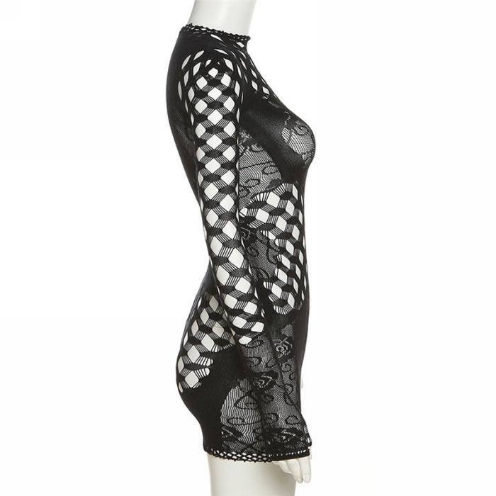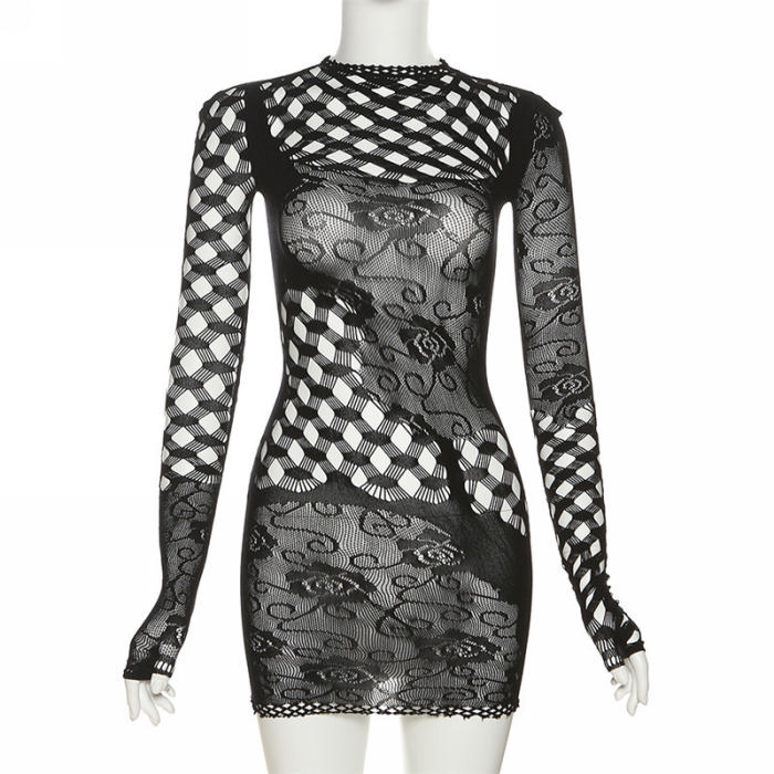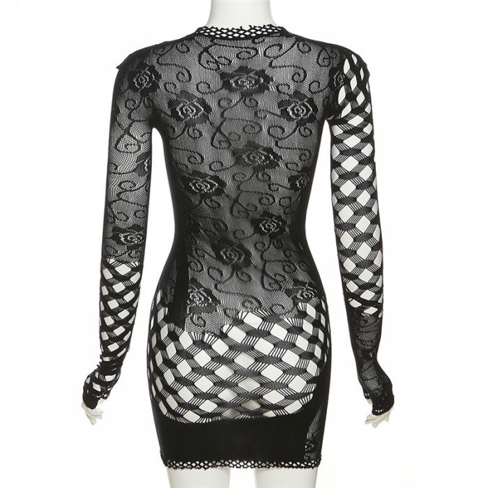 (Real Image)2023 Styles Women Sexy&Fashion Spring&Summer TikTok&Instagram Styles Lace Long Sleeve Mini DressSKU: #OM390-1