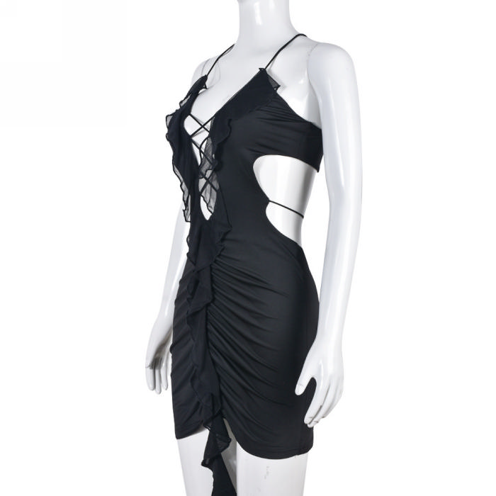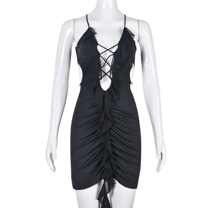 (Real Image)2023 Styles Women Sexy&Fashion Spring&Summer TikTok&Instagram Styles Lace Up Black Club DressSKU: #CF59400-1