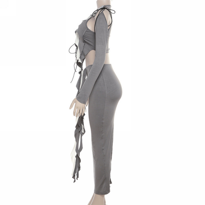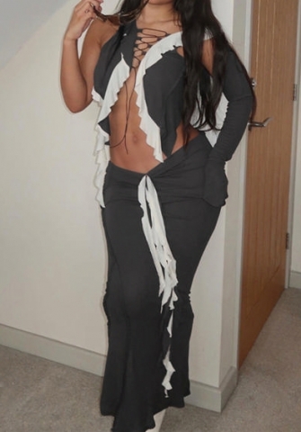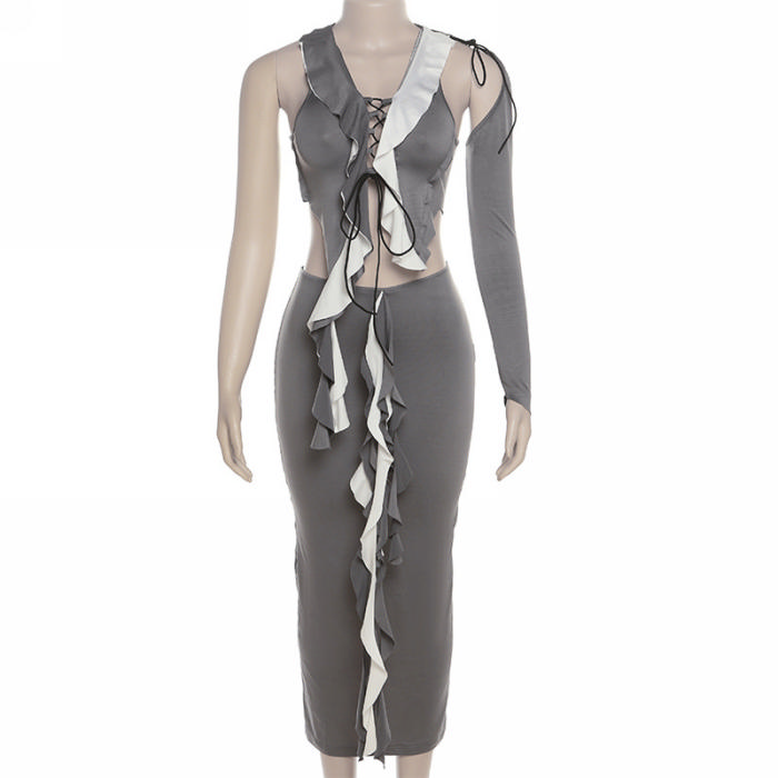 (Real Image)2023 Styles Women Sexy&Fashion Spring&Summer TikTok&Instagram Styles Lace Up Contrast Color Maxi DressSKU: #OM413-1