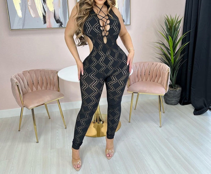 (Real Image)2023 Styles Women Sexy&Fashion Spring&Summer TikTok&Instagram Styles Lace Up Lace JumpsuitSKU: #CF77570-1