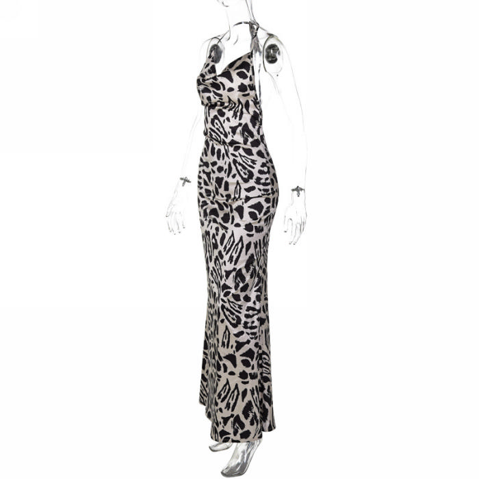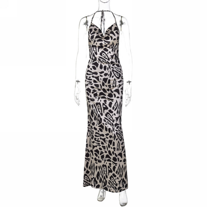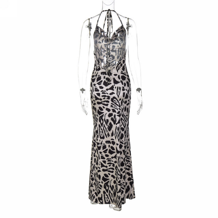 (Real Image)2023 Styles Women Sexy&Fashion Spring&Summer TikTok&Instagram Styles Leopard Strap Backless Maxi DressSKU: #CF88075-1