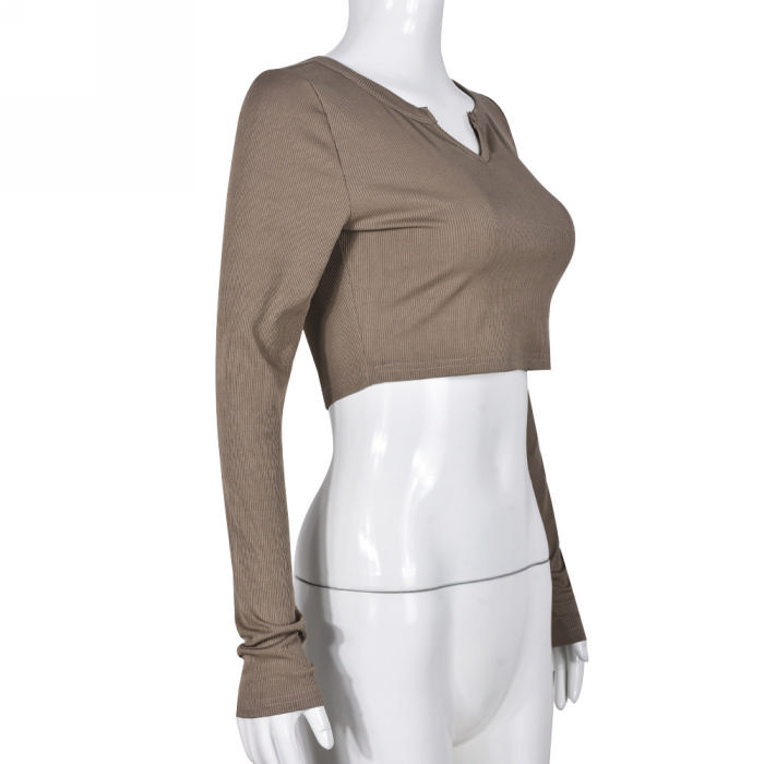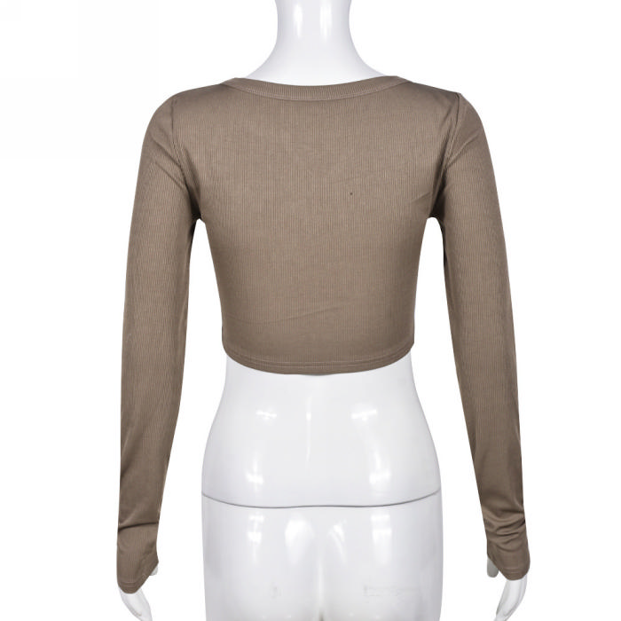 (Real Image)2023 Styles Women Sexy&Fashion Spring&Summer TikTok&Instagram Styles Long Sleeve Coffee Tank TopsSKU: #CF59469-1