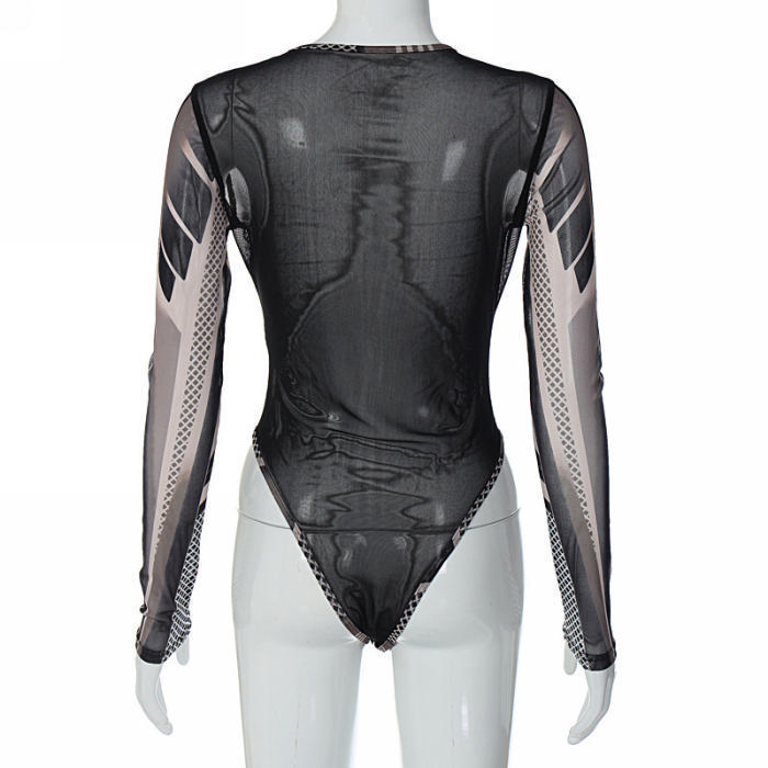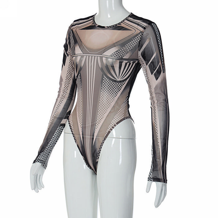 (Real Image)2023 Styles Women Sexy&Fashion Spring&Summer TikTok&Instagram Styles Long Sleeve Print BodysuitSKU: #CF22930-1