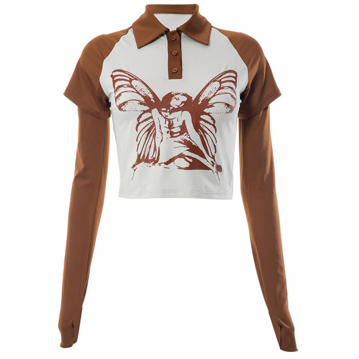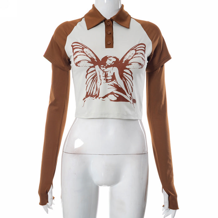 (Real Image)2023 Styles Women Sexy&Fashion Spring&Summer TikTok&Instagram Styles Long Sleeve Print TeeSKU: #CF76072-1