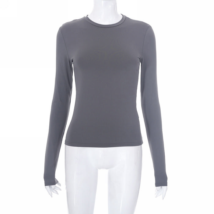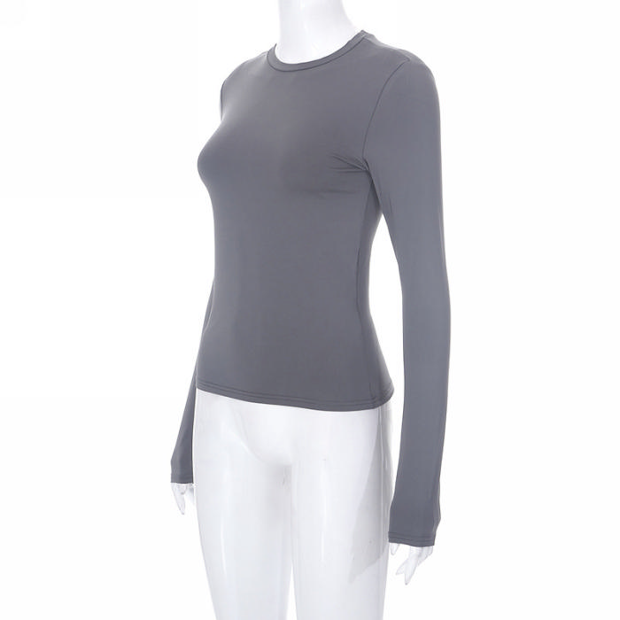(Real Image)2023 Styles Women Sexy&Fashion Spring&Summer TikTok&Instagram Styles Long Sleeve Round Neck TeeSKU: #OM428-4