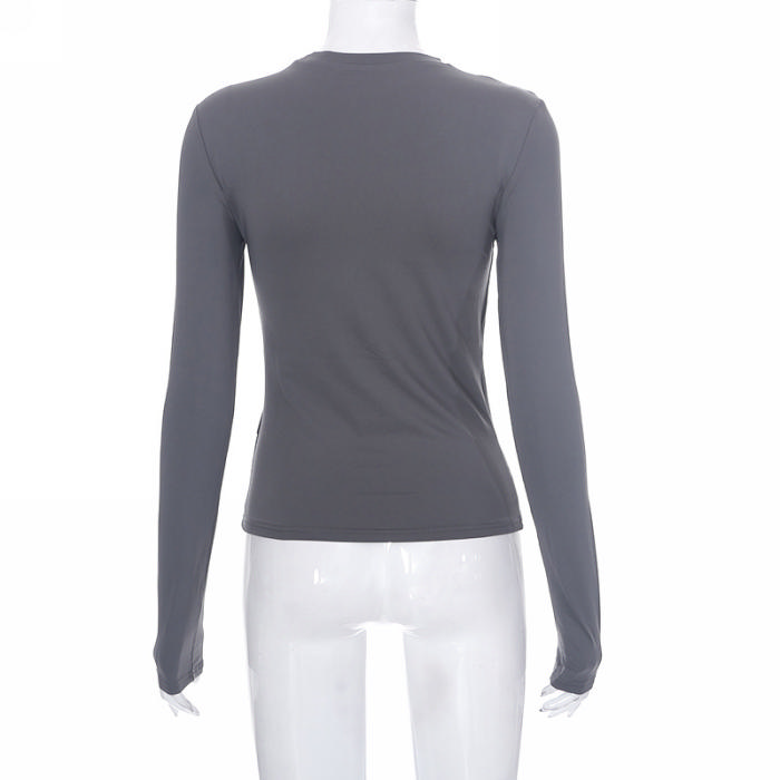 (Real Image)2023 Styles Women Sexy&Fashion Spring&Summer TikTok&Instagram Styles Long Sleeve Round Neck TeeSKU: #OM428-2