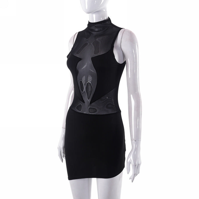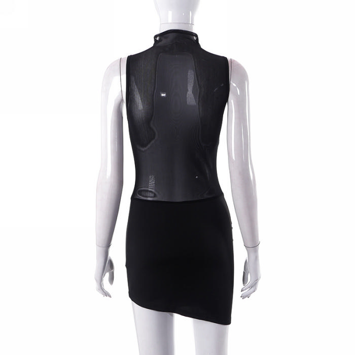 (Real Image)2023 Styles Women Sexy&Fashion Spring&Summer TikTok&Instagram Styles Mesh Black Club DressSKU: #OEM5842-1
