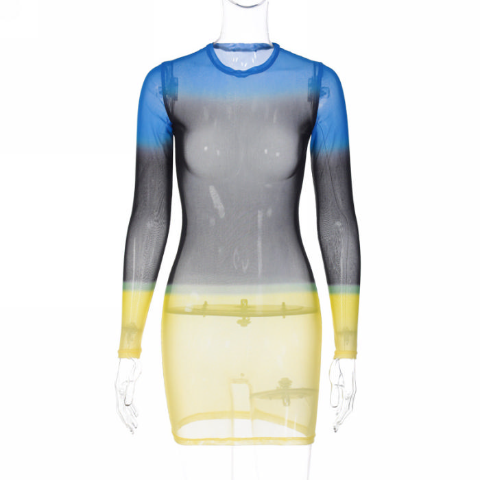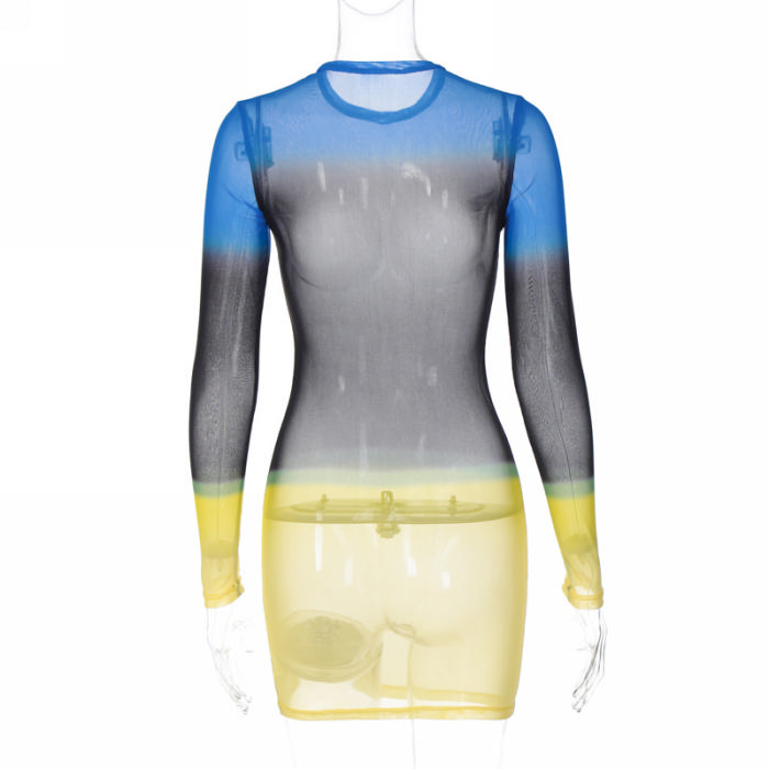 (Real Image)2023 Styles Women Sexy&Fashion Spring&Summer TikTok&Instagram Styles Mesh Colorful Mini DressSKU: #CF22945-1