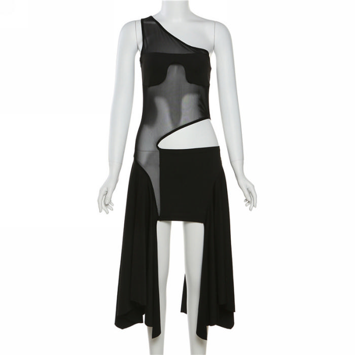 (Real Image)2023 Styles Women Sexy&Fashion Spring&Summer TikTok&Instagram Styles Mesh Irregular Mini DressSKU: #CF83115-1