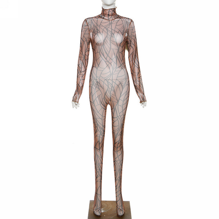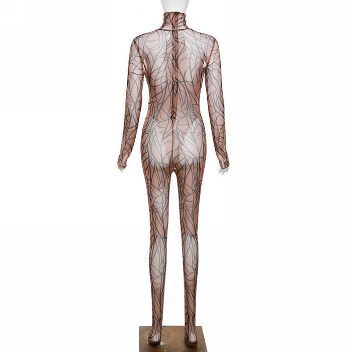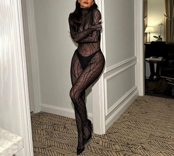 (Real Image)2023 Styles Women Sexy&Fashion Spring&Summer TikTok&Instagram Styles Mesh Long Sleeve JumpsuitSKU: #CF77208-1