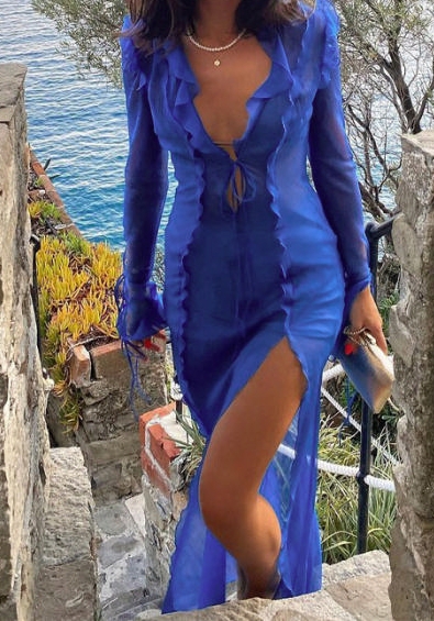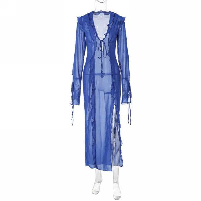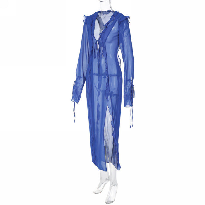 (Real Image)2023 Styles Women Sexy&Fashion Spring&Summer TikTok&Instagram Styles Mesh Open Maxi DressSKU: #CF38173-1