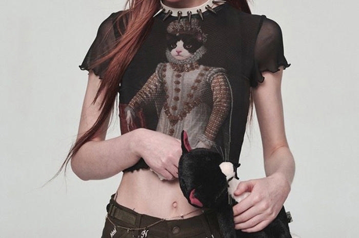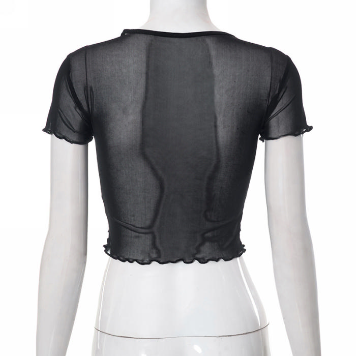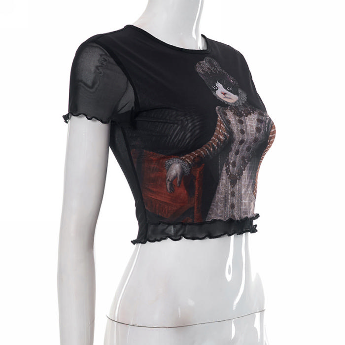 (Real Image)2023 Styles Women Sexy&Fashion Spring&Summer TikTok&Instagram Styles Mesh Print TeeSKU: #CF76119-1