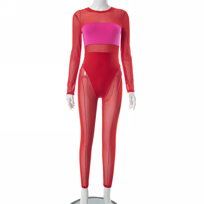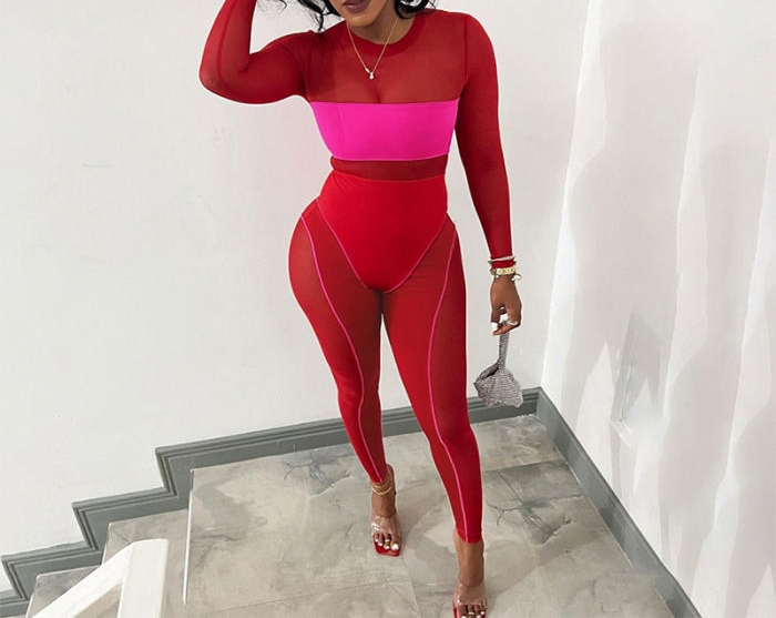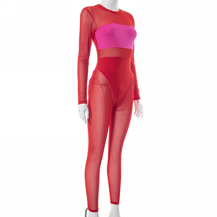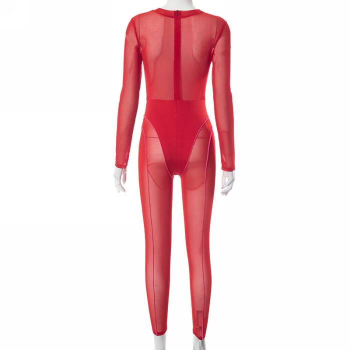 (Real Image)2023 Styles Women Sexy&Fashion Spring&Summer TikTok&Instagram Styles Mesh Red JumpsuitSKU: #CF47588-1