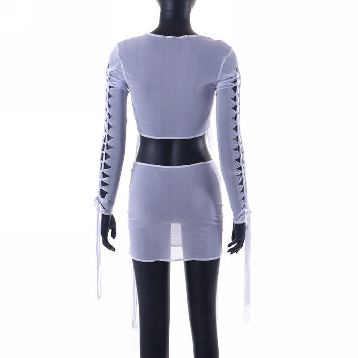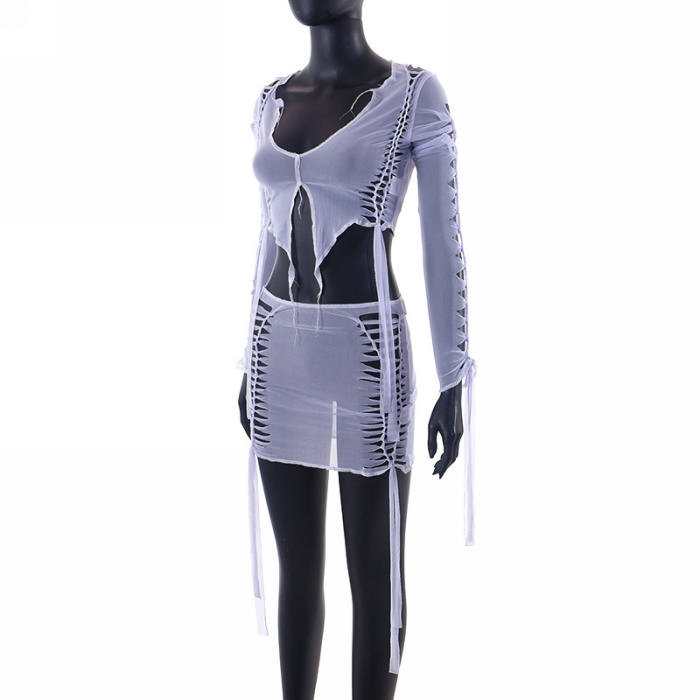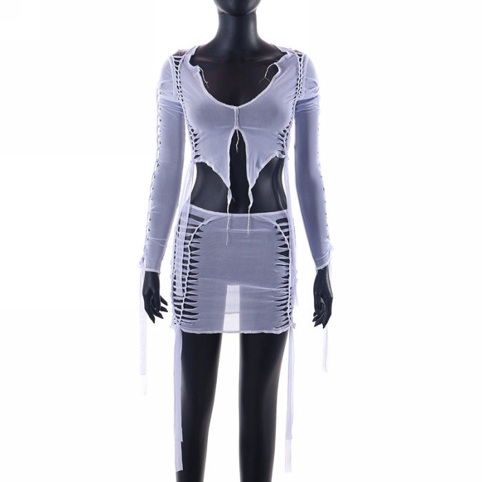 (Real Image)2023 Styles Women Sexy&Fashion Spring&Summer TikTok&Instagram Styles Mesh Ripped Club DressSKU: #OEM5845-1