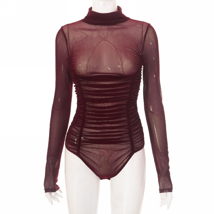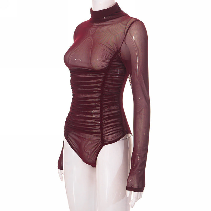 (Real Image)2023 Styles Women Sexy&Fashion Spring&Summer TikTok&Instagram Styles Mesh Ruffle BodysuitSKU: #CF80050-1
