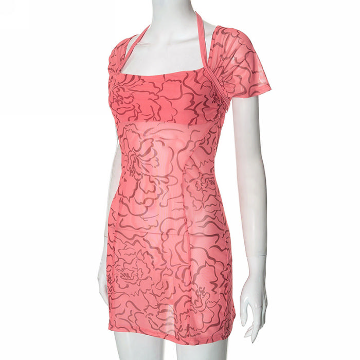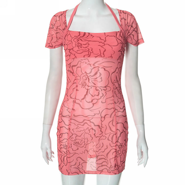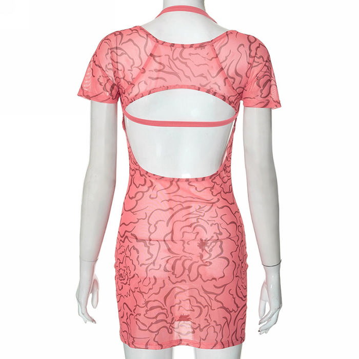 (Real Image)2023 Styles Women Sexy&Fashion Spring&Summer TikTok&Instagram Styles Mesh Short Sleeve Club DressSKU: #CF68280-1