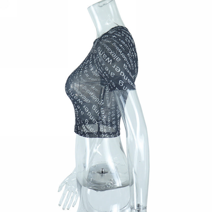 (Real Image)2023 Styles Women Sexy&Fashion Spring&Summer TikTok&Instagram Styles Mesh Short Sleeve Tank TopsSKU: #CF67103-1