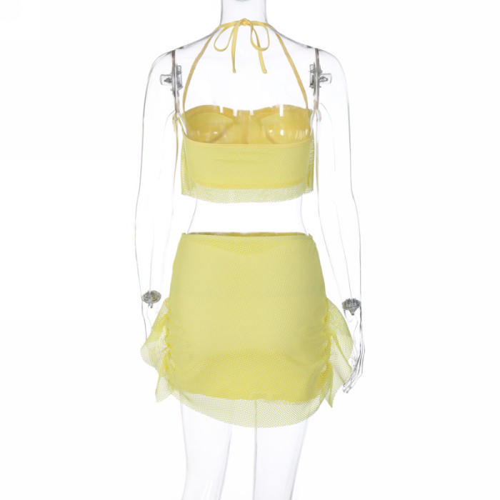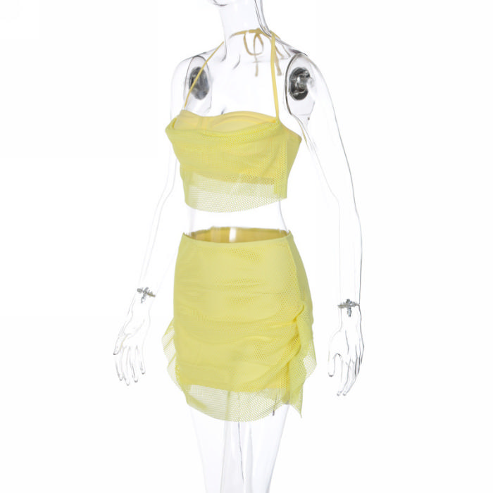 (Real Image)2023 Styles Women Sexy&Fashion Spring&Summer TikTok&Instagram Styles Mesh Yellow Two Piece DressSKU: #CF38229-1