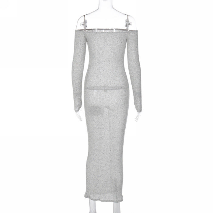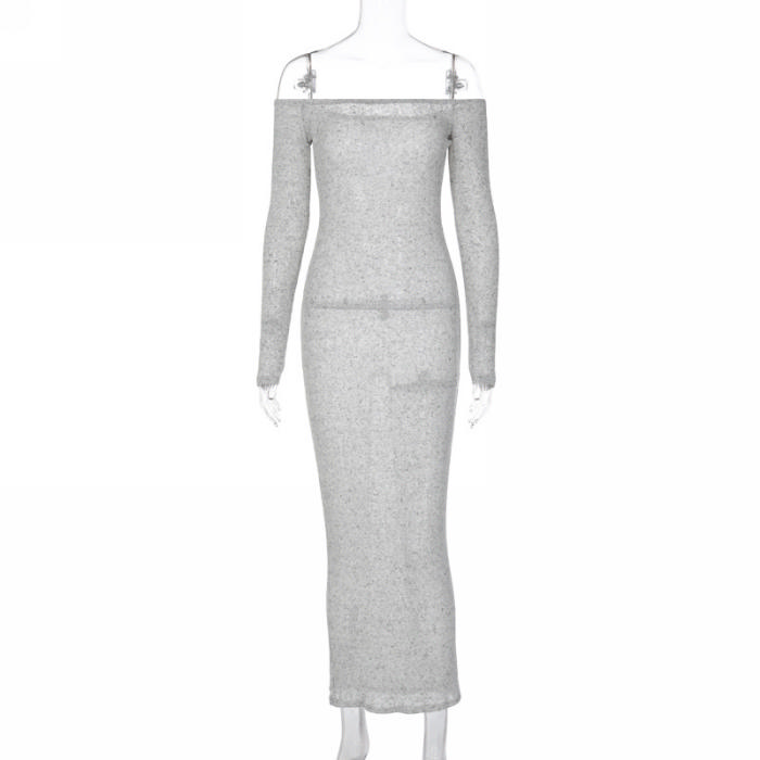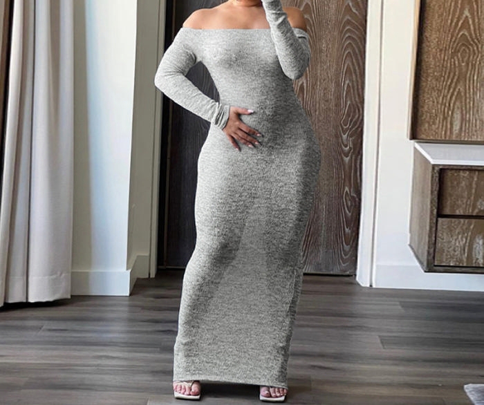 (Real Image)2023 Styles Women Sexy&Fashion Spring&Summer TikTok&Instagram Styles Off Shoulder Long Sleeve Maxi DressSKU: #CF88099-1