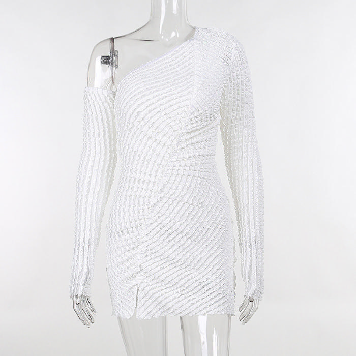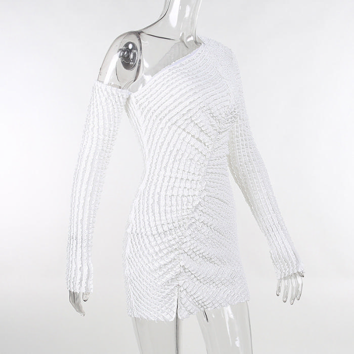 (Real Image)2023 Styles Women Sexy&Fashion Spring&Summer TikTok&Instagram Styles Off Shoulder Long Sleeve Mini DressSKU: #XF92782-1