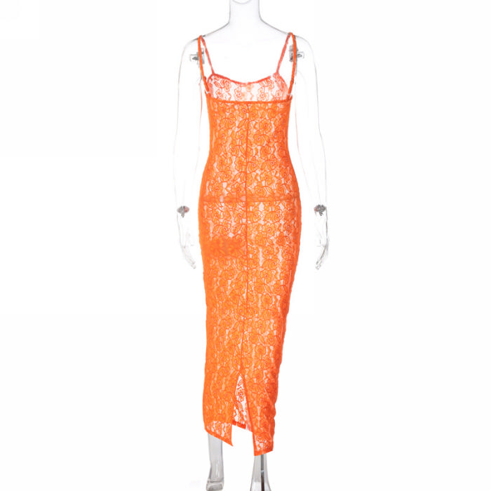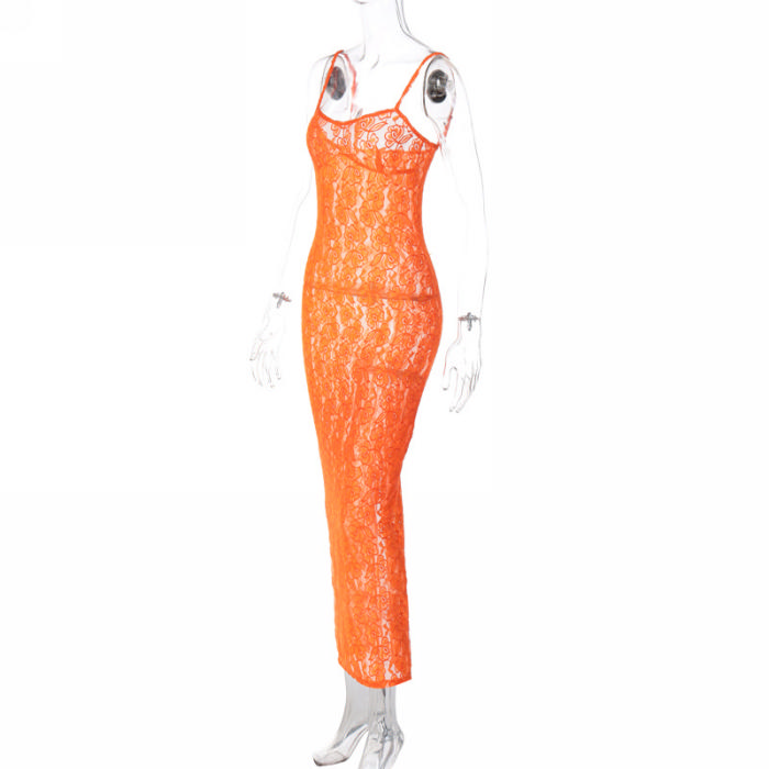 (Real Image)2023 Styles Women Sexy&Fashion Spring&Summer TikTok&Instagram Styles Orange Lace Strap Maxi DressSKU: #CF38198-1