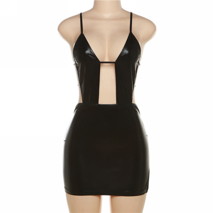 (Real Image)2023 Styles Women Sexy&Fashion Spring&Summer TikTok&Instagram Styles PU Cut Out Strap Mini DressSKU: #CF47615-1