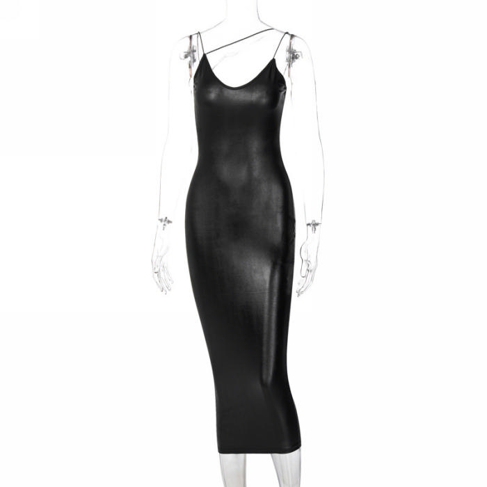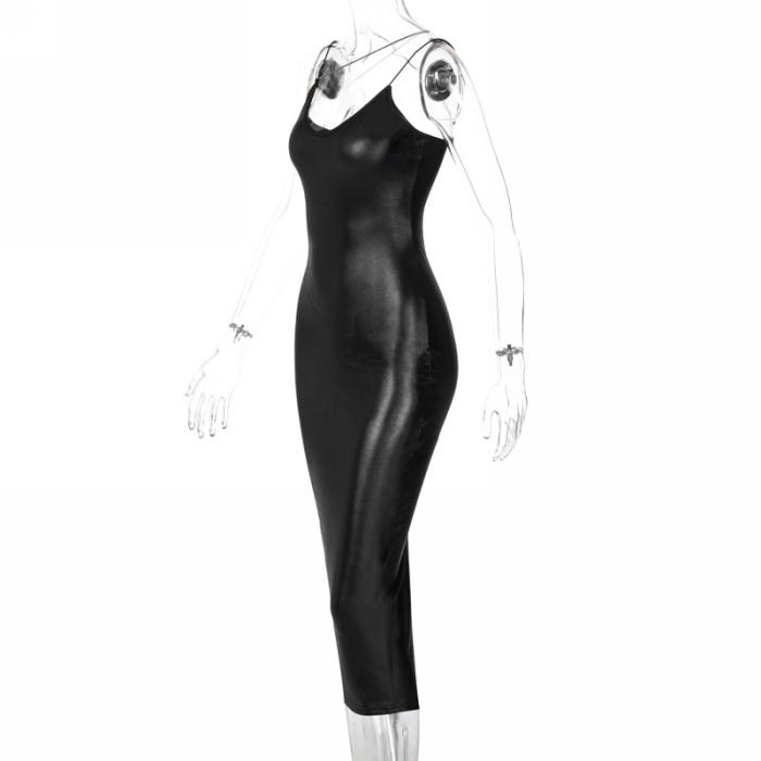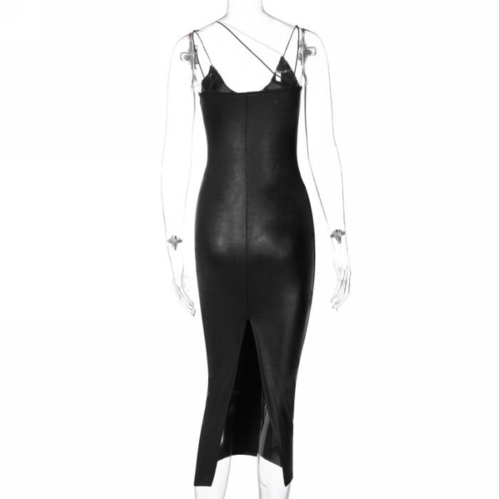 (Real Image)2023 Styles Women Sexy&Fashion Spring&Summer TikTok&Instagram Styles PU Midi DressSKU: #OU210-2